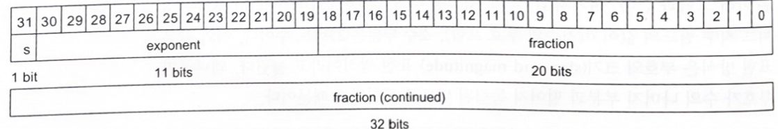 MIPS에서는 위의 그림과 같이 2배 정밀도를 표현한다. 2배 정밀도 연산은 지수 부분이 커져서 오버플로나 언더플로의 가능성을 낮춰주지만, 더 큰 장점은 더 큰 소수 부분을 제공해서 정밀도가 높아진다는 것이다.