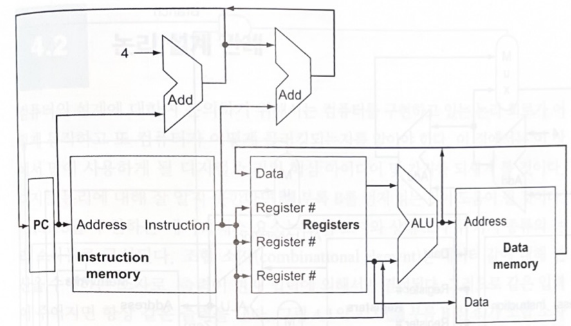 MIPS를 구현하는 데이터패스 요소는 조합 소자와 상태 소자 두 가지 종류의 논리 소자들로 구성된다.