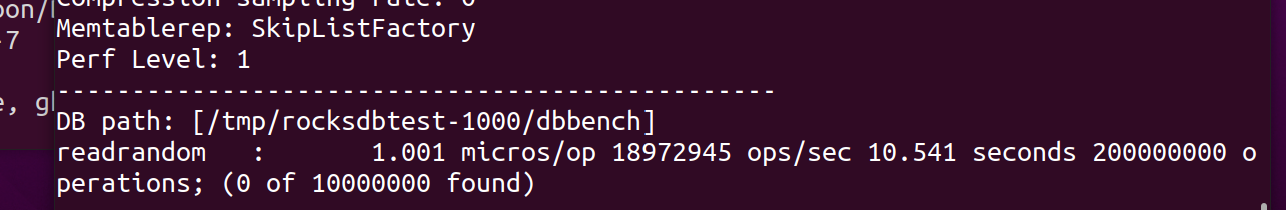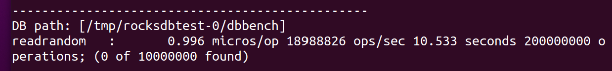 ./db_bench --benchmarks=readrandom --num=10000000 --threads=201000만 개의 랜덤 read 요청을 20개의 스레드를 통해 처리하는 벤치마크 테스트 코드입니다.