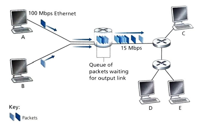 위의 이미지와 같이 링크의 전송률(대역폭)이 차이가 날 경우 패킷은 출력 버퍼에 큐잉될 것이다.