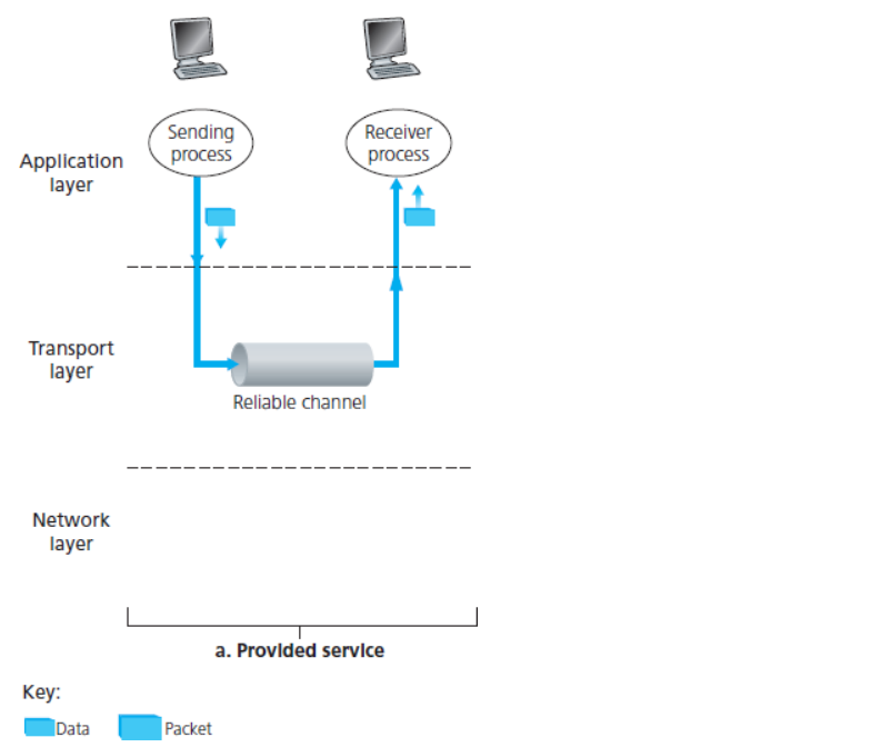위에서 언급한 것은 신뢰적인 데이터 전송 프로토콜(reliable data transfer protocol)의 의무이다. 이는 전송 프로토콜 바로 아래 계층이 신뢰적이지 않아서 어렵다. 이 절에서는 하위 계층을 간단히 비신뢰적인 점대점 채널로 볼 것이다.