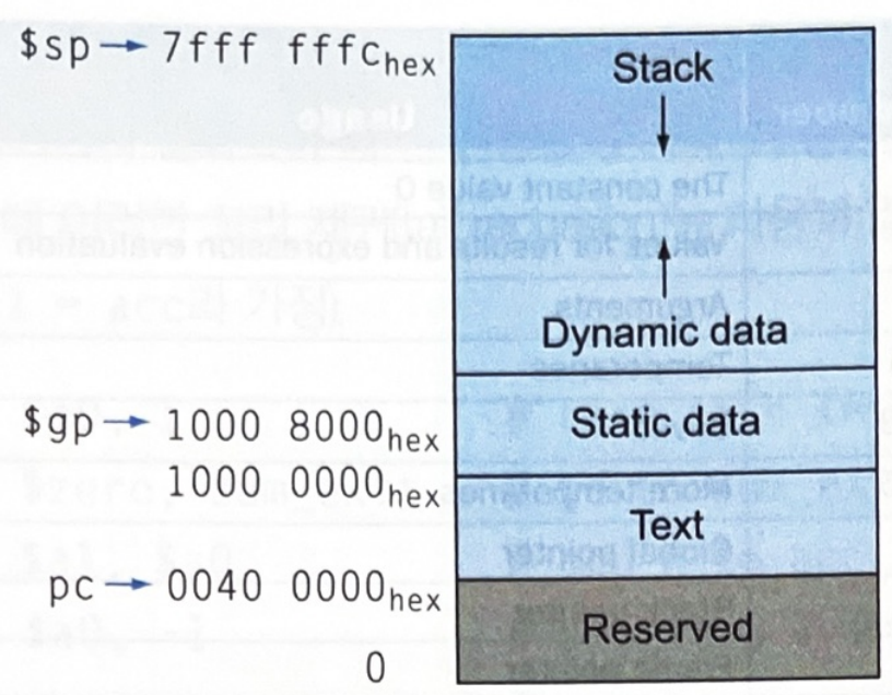 레지스터는 데이터를 저장하는 가장 빠른 장소이기 때문에 가능한 많이 사용하는 것이 바람직하다.- $a0 ~ $a3: 전달할 인수를 가지고 있는 인수 레지스터 4개